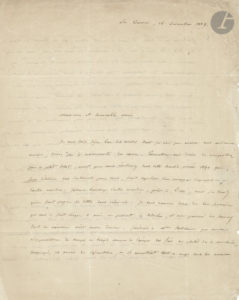 Henri-Dominique LACORDAIRE (1802-1861) L.A.S., La Quercia 16 décembre 1839, au comte de Falloux, à Rome ; 2 pages et demie in-4, adresse, marque postale Viterbo (bord lég. effrangé). Magnifique lettre au jeune publiciste. Il n’a...