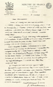 Léautaud répond : « C’est du narcissisme à l’envers. Je vous ai écrit une fois, au contraire, que vous me plaisiez beaucoup, et je ne crois pas vous avoir marqué jamais aucune antipathie. Sur la question Freud vous avez votre opinion, j’ai la mienne. Il est probable qu’il y en a bien d’autres »... Au sujet de Charles Dullin, il s’indigne de « la façon dont ce cabotin a osé toucher au Mariage de Figaro », et « les tripatouillages à la mode au théâtre aujourd’hui. […] Quant à ce que vous me dites d’une autre façon de vivre, d’un autre caractère que j’aurais, d’autres amours qui m’auraient occupé, d’un autre bonheur que j’aurais eu, etc. etc., si, si et si… c’est de la littérature bien en l’air. Si cela vous intéresse à savoir, sachez que tout est loin de m’avoir manqué »…