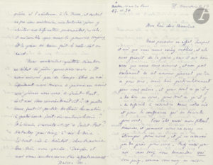 privée des Maritain, ses parrain et marraine]. Elle lui dit son amour, « pour tout ce qu’il y a de bon en vous, pour tout ce qu’il y a de difficile à résoudre dans votre vie et pour la souffrance qui en découle pour vous ». Elle l’encourage dans sa foi en la doctrine catholique : « Divine, elle défend tout ce qui empêche notre dégagement spirituel. Humaine, elle pardonne aussi longtemps que nous gardons à Dieu notre foi et notre confiance »… Etc. On joint 2 L.A.S. de Jacques Maritain à Sachs, dont une cosignée par Raïssa, Buenos Aires 29 août 1936. Plus 3 l.a.s. de M.P. Rouault