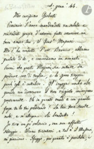 une confédération des états italiens sous l’autorité du Pape, qui aura une grande influence sur le Risorgimento.] Pellico envoie ses vœux à Gioberti, le remerciant de lui avoir fait connaître Giuseppe Massari (1821-1884), qui lui semble capable de grandes choses, d’autant plus qu’il est catholique. Même les plus grands esprits, lorsqu’ils ne discernent pas la véritable vérité religieuse, trébuchent gravement. (« questo Massari sia mente da produre cose di vaglia, e lo spero vieppiu perch’egli è cattolico. Gl’ingegni anche alti quando non discernono il vero religioso, incianpano gravemente »). Pellico vit en solitaire, mais non en sauvage. Il fuit, autant que possible, les paroles vaines, curieuses ou vulgaires ; et quand il ne peut y échapper, il écoute et parle, car en toute âme humaine gît quelque trésor, petit ou grand : « Io vivo un po solitario, ma non affatto selvaggio. […] Sfuggo, per quanto è possibile, i parolai vani, curisi, volgari, che son molti. E quando non posso sfuggirli, penso che non bisogna essere scortese, ed ascolto e parlo ; in ogni anima umana vi è qualche tesoro, picciolo o grande »… On joint : 3 L.A.S. du traducteur de Pellico, Antoine de Latour, 1872-1875, concernant notamment André Chénier ; et une L.A.S. d’Alexandre Andryane, compagnon de prison de Pellico, à l’éditeur Ladvocat, au sujet de la réédition de ses Mémoires d’un prisonnier (1859).
