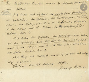 Heinrich RITTER (1791-1869) philosophe allemand. P.A.S., Göttingen 28 octobre 1843 ; 1 page in-8 ; en allemand. Annonce de ses prochains cours : System der praktischer Philosophie, et Geschichte der Philosophie…, avec détails.