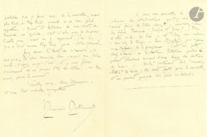 Romain ROLLAND (1866-1944). 2 L.A.S., 1905-1910, à Charles Dumas ; 3 pages et demie in-8, enveloppes. 2 novembre 1905. Il n’a rien à lui proposer pour le Figaro illustré, ne faisant pas de nouvelle en ce moment : « je...