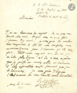 Georges CUVIER (1769-1832). L.A.S., Paris 2 avril 1811, à Docteur Bayle, secrétaire de l’Athénée de Médecine de Paris ; 1 page in-4, adresse. Il a été admis au sein de l’Athénée de Médecine de...