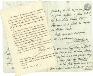 GÉOGRAPHES. 17 lettres, la plupart L.A.S., fin XVIIIe-XIXe s. Jean-Denis BARBIÉ DU BOCAGE (an X, correction d’épreuves), Pierre-Gilles CHANLAIRE (10, 17997-1814, en particulier sur ses cartes de France et de Belgique), Jean-Baptiste...
