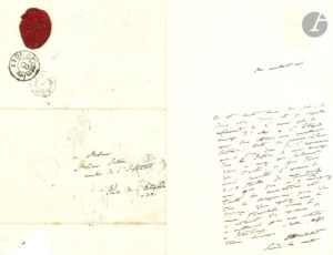 Alexandre von HUMBOLDT. L.A.S., [Paris 8 novembre 1841], au sinologue Stanislas Julien, de l’Institut » ; 1 page in-8, adresse avec cachet de cire rouge. Sur le point de quitter la France, Humboldt, qui n’a pas le courage...