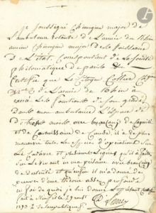 l’état, correspondant de la Société philomatique de Paris, etc. », il certifie que « le Citoyen Collier, Chgien de 2e classe de l’armée du Rhin, a exercé les fonctions de son grade dans mon ambulance l’espace de trois mois avec beaucoup de capacité et de connaissance de cause. Il a de plus maneuvré toutes les espèces d’opérations sur le cadavre et plusieurs légères qu’il a faites sur le vivant en ma présance avec beaucoup de dextérité, et qu’enfin il m’a donné des preuves d’une théorie assez profonde »…