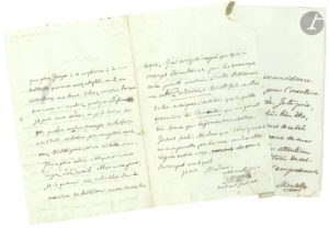Edme MENTELLE (1730-1815) géographe. 11 L.A.S., une L.S. et un manuscrit autographe, 1784-1810 ; 25 pages in-ou in-8. 2 sont adressées à Panckoucke, au sujet de son travail pour l’Encyclopédie et d’un manuscrit qui...