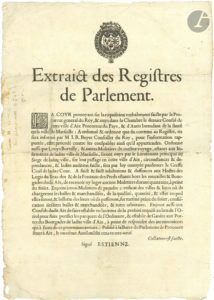 ANCIEN RÉGIME. 26 affiches, XVIIe-XVIIIe siècles ; la plupart grand in-fol. (qqs défauts). Lettres royales, arrêts de parlements ou du Conseil d’état, ordonnances d’intendant, règlements, etc., concernant le rachat...