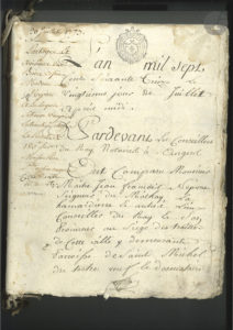 ANJOU. Environ 40 documents, XVII-XVIIIe s. (défauts). Actes, aveu, inventaire, ventes (notamment d’une closerie), partages, rentes, etc., concernant Angers, les Mauges, Beaupréau, Montrevault et sa vicomté, La Roche Airault ; et...