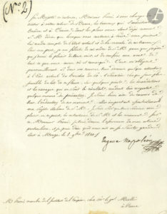 télégraphique adressée à Napoléon : Le Vice-Roi informe Sa Majesté que les Télégraphes de Venise ont signalé 2 frégates anglaises devant Chiogga, et un autre bâtiment à 3 mâts, probablement marchand, ainsi que « 2 corsaires en face des bouches de la Piave »… – Monza 8 novembre 1810, à l’ingénieur Gaspard de Prony. « Sa Majesté m’autorise […] à vous charger de visiter à votre retour de Rome, les travaux qui s’exécutent à Ancône et à Venise, dont les plans vous sont déjà connus. S.M. désire que lorsque vous rentrerez à Paris, vous puissiez lui rendre compte de l’état actuel et de la marche de ses travaux » Il faudrait aussi voir les bouches du Pô : « L’élévation chaque jour plus sensible du lit de ce fleuve, […] les inondations et les ravages qui en sont le résultat rendent très urgentes quelques mesures de précaution »… – Venise 18 février 1812, billet autographe demandant à Dupont « quel est après Ruggieri le chirurgien le plus capable de remplir la chaire clinique »... – Milan 14 août 1813. Dépêche au commissaire général de la Marine à Venise, demandant « pourquoi, lorsqu’on voit une chebeck ou corsaire ennemi près de Venise, on n’envoye pas de suite 2 petits bricks pour le reconnaitre et l’éloigner » ; qu’on l’informe du départ de la division de canonnières envoyées aux bouches de l’Isonzo…