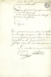 vues utiles sur l’établissement d’un mouillage avantageux en l’isle de Batz. Le comité également empressé d’assurer le triomphe et la prospérité de la République examinera avec intérêt votre mémoire »… On joint un imprimé, 27 frimaire VIII, circulaire du Ministre de la Police générale Fouché.