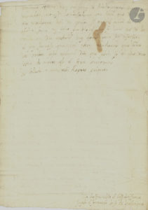 Bretaigne », Tolède mercredi après Pâques [1560 ?], à la Reine Catherine de Médicis ; 1 page et demie in-fol., adresse à « La Raine ma souveraine dame » (encre un peu pâle, petites fentes pour la couture de la lettre). Nouvelles de la Reine Élisabeth à sa mère, et du Roi Philippe II. La Reine veut assurer sa mère « de la bonne voulonte que vous portet le roy », et « de la paine anquoi il est de vos affaires » ; « elle se porte dieu merci fort bien et se fait si grande et anbonpoint quil est home bien estrange veu son aige ». Au retour du roi, ils partiront pour Ségovie et le pays d’Aragon. La Reine se réjouit à l’idée de voir bientôt sa mère… Etc.