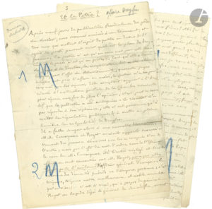 Affaire DREYFUS. Jules QUESNAY DE BEAUREPAIRE (1834-1923), magistrat, antidreyfusard. Manuscrit autographe signé, Et la Patrie ? ; 4 pages petit in-4 (découpées par l’imprimeur et recollées. Violent article contre Dreyfus...