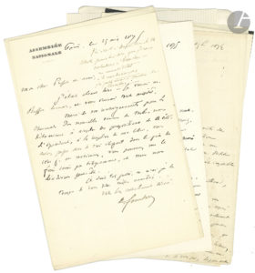 14 pages in-8, 4 à en-tête Assemblée Nationale. Intéressante correspondance politique, critiquant notamment le ministère, « voué par des passions à une impuissance radicale, et destiné à voir grandir à ses côtés tous les ennemis qu’il a la prétention de combattre. […] C’est un malheur réel. Je n’ai aucune voix au chapitre, mais je me permettrai de vous dire : tant que vous le pourrez, ne commettez vis-à-vis des gauches aucune faiblesse, combattez tout ce qui va sur la pente du radicalisme, ne rendez plus la voie publique à des journaux comme le XIXe siècle. C’est la politique autoritaire qui seule vous fera vivre ; sans elle vous périrez rapidement et misérablement »… Etc. On joint 2 brouillons de réponse, et 3 lettres à Welche par Paul Andral, Costa de Beauregard, Adrien Tailhan, etc.