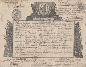 X), Armand de Marescot (16 fructidor VIII), Julien Vinot (Paris 8 novembre 1814). On joint 2 certificats du Bataillon de l’École, dit des Cinq Cents (La Fère brumaire VII, un à en-tête).