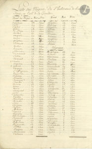 cession de l’île par la France aux Anglais. « Etat general des domaines appartenans à Monsieur le Baron de Bonvoust circonstances et dependances 1° de son habitation située au quartier de la basse terre Isle Grenade […] 2° des nègres et bestiaux servant à la dite habitation 3° de deux maisons et plusieurs terreins situés dans la ville ». Description détaillée de l’habitation, de ses bâtiments, des maisons de ville, avec estimation chiffrée, ainsi que pour les bestiaux et les « Nègres servant à l’exploitation de l’habitation » : « Il y a 110 à 120 Nègres tant grands que petits qui sont tous Nègres faits, notament il y en a huit ou dix bons rafineurs et ouvriers du nombre desquels il en est quatre en état de conduire une sucrerie. Il y a un très bon maçon, un maître tonnelier, […] deux fort bons cuisiniers et deux charretiers. Six bonnes servantes et blanchisseuses »…, estimés 176000 livres ; l’ensemble s’élève à 663080 livres. « Etat de l’habitation de Monsieur le Baron de Bonvoust située en l’isle de la Grenade en Amerique, quartier du Fort Royal »… : état des plantations, suivi de la « Liste des Nègres de l’habitation de Baulieu située en l’isle de la Grenade », avec les noms des Nègres et des Négresses, avec leur âge (de 58 à un ans) et leur prix (de 2500 à 150).