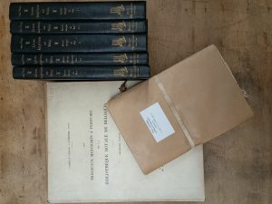 B. B.). Catalogue des livres imprimés sur vélin de la bibliothèque du Roi. New York, Burt Franklin, 1966; 6 tomes en 5 vol. gr. in-8, bradel toile enduite noire, titre doré au dos. Très bon exemplaire de cette réimpression de l'édition de 1822. - GASPAR (Camille), LYNA (Frédéric). Les Principaux manuscrits à peintures de la bibliothèque royale de Belgique. Première partie. Paris, Pour les membres de la Société française de reproductions de manuscrits à peintures, 1937; fort vol. in-4, en ff., chemise à rabats. Orné de 113 planches h. t. de reproductions.