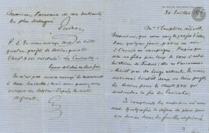 François GUIZOT (1787-1874). L.A.S., Val Richer 30 juillet 1870, [à Alphonse de Neuville] ; 4 pages in-12 sur papier bleu à son chiffre et en-tête du Val Richer. Au sujet de l’illustration de son Histoire de France depuis les...