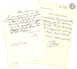 HISTOIRE. 8 L.A.S. ou L.S. Henri duc d’Aumale, Eustache Bruix, Ferdinand Foch, Fririon, comte de Lariboisière (avec Fabvier, Paixhans, Tracy…), G. Lesage-Senault, Louis-Philippe (et Guizot), etc.