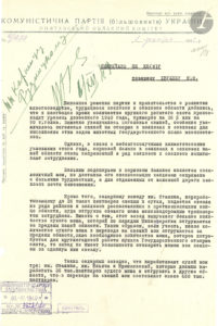 en-tête du Parti Communiste (Bolchevique) d’Ukraine, cachet encre de réception (bord gauche lég. effrangé) ; en russe (traduction anglaise jointe). Rare document de Khrouchtchev alors Premier Secrétaire du Parti en Ukraine. Le document est relatif aux travailleurs des kolkhozes et des sovkhozes, qui doivent développer l’élevage du bétail, qui a augmenté de 35% depuis 1940, notamment le cheptel de porcs, et qui doit encore augmenter afin de satisfaire la demande en viande. À cause du mauvais temps, la situation est devenue tendue et plusieurs kolkhozes sont en difficulté. La culture de la betterave est très utile pour nourrir le bétail, mais l’approvisionnement est difficile à cause de l’éloignement des kolkhozes des voies ferrées. D’un autre côté, la production de betteraves sucrières se développe : l’usine de Staline traite 35.000 têtes par jour. Il y a pour l’instant 3 usines de traitement de betteraves à Staline, Lénine et Shramkovsky, qui doivent atteindre un rendement de 450.000 pour envoyer aux autres régions… En tête du document, à l’encre verte, Khrouchtchev a inscrit le nom des Camarades Korniyets et Roudnytsky, sa signature et la date « 8/XII/49 ».