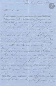 Gustave Olivier LANNES, comte de Montebello (1804-1875) fils du maréchal d’Empire, aide de camp de Napoléon III et général. L.A.S., Paris 5 juin 1862, au général Durrieu ; 1 page et quart in-8. Il a personnellement remis...