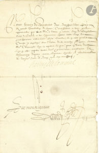LORRAINE.10 documents, la plupart P.S. ou L.A.S. Charles de Lorraine, duc de Mayenne (Paris 1584, vélin). Henri duc de Lorraine (Nancy 1609, vélin). Henri de Lorraine, duc d’Aiguillon (Fontainebleau 1609). Françoise de Lorraine,...