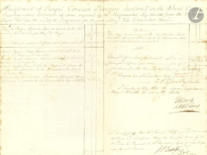(régiment formé de volontaires corses partisans de Pascal Paoli opposés aux Bonaparte, servant sous la bannière britannique), il certifie et signe ce tableau de paiement du Regiment of Royal Corsican Rangers stationed on the Island Capri ; avec l’estimation des sommes dues aux différents soldats, approuvée par le Payeur général Cleeve : il signe « H. Lowe, Lt Colonel Commt ». [Sur l’île de Capri, face au royaume de Naples, Hudson Lowe et ses 2000 hommes du Royal Corsican Rangers bravaient les Français ; en octobre 1808, Murat, installé sur le trône de Naples à la place de Joseph, parvint à faire capituler Lowe.] On joint une P.S. par l’Amiral Sir William Sidney Smith, 5 août 1815.