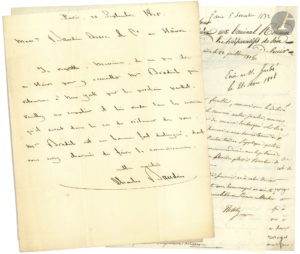 François-Edmond Paris (Exposition Universelle de 1867), François-Étienne de Rosily-Mesros (1806, un bord rogné), Albin Roussin (à François Arago avec apostille de 4 lignes d’Arago, 1832). On joint une gravure coloriée, Georges d’Arnouville et les pirates du Golfe Persique.