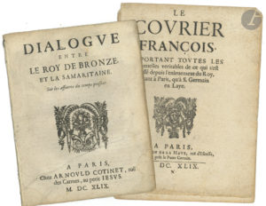 la Samaritaine sur les affaires du temps present [et Second et Troisiesme…] – Le Courier François, apportant toutes les Nouvelles veritables de ce qui s’est passé depuis l’enlevement du Roy… plus les Suitte et Seconde [à Cinquiesme] Arrivée… – Arrest de la Cour de Parlement du 8 janvier 1649 (mise hors la loi de Mazarin).