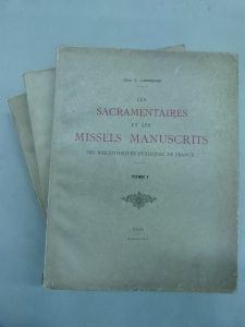 LEROQUAIS (abbé V.). Les Sacramentaires et les missels manuscrits des bibliothèques publiques de France. Paris, s. n., 1924 ; 3 vol. in-4, brochés, non coupés. Couvertures un peu salies.