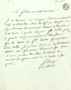 Joachim MURAT (1767-1815) maréchal d’Empire, roi de Naples. L.S., [mai 1802] ; ¾ page in-4. Nomination d’un commandant sur l’île d’Elbe. « Il est ordonné au citoyen Sanseverino Peraldi, chef de...