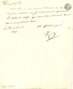 NAPOLÉON Ier. L.S. « NP », Paris 8 avril 1809, au Vice-Roi Eugène de Beauharnais ; demi-page in-4. À son fils adoptif le Vice-Roi d’Italie : « Mon fils, je vous envoie l’itinéraire de la colonne du...