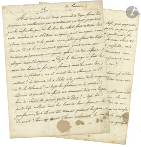 Louis-Guillaume OTTO (1754-1817) diplomate. L.A., [prison du Luxembourg] 10 frimaire [II : 30 novembre 1793], à son épouse Fanny Otto ; 7 pages in-4 (qqs petites taches). Longue et émouvante lettre de prison, témoignage des...