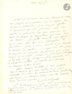 Charles Maurice de TALLEYRAND (1754-1838). L.A.S., Hyères 24 janvier [1826 ?], au comte de Villeneuve ; 1 page in-4 (montage à fenêtre). « Quoique je sois encore chez vous, […] car lorsqu’on est en Provence on est...