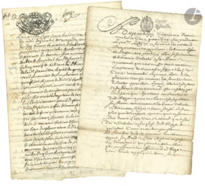 procès-verbaux, certificats, suppliques et requêtes, arbitrages, tutelles, etc. Plusieurs avec timbres fiscaux. Angoumois, Auch, Auvergne (Chamalières, Clermont-Ferrand, Royat), Gironde (dont une l.s. du comte Lynch, maire de Bordeaux), Saint-Étienne (Montbrison, Rive de Gier et Saint-Chamond, Saint-Rambert), Paris, Pontoise, Provence (Brignoles, Toulon), Pyrénées, Gers (copie de documents concernant la fondation de chapelles au château de Castelmore et les chapelains, 1691-1746),etc. On joint le manuscrit calligraphié d’un Nouveau coup d’œil sur l’Inspection aux revues, « poème didactique » (1809), un ausweis (1916), et un dossier de photographies diverses (années 1920).