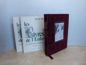 bibliographie sur les livres de l'Enfer. L'un des 800 exemplaires numérotés sur papier Centaure ivoire.— JOINT : Anthologie historique des dessins érotiques. 1879-1929. Paris, Jean-Jacques Pauvert, Michel de l'Ormeraie, 1982 ; in-8, cartonnage de l'éditeur velours cramoisi, illustration sur le premier plat, tranches dorées.