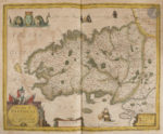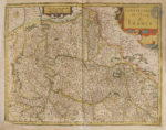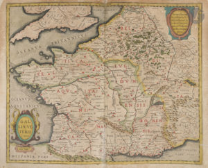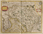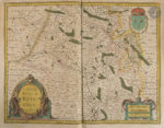 souple, filet doré et à froid en encadrement et superlibris doré au centre sur les plats, dos lisse orné (reliure de l’époque). Cornelis Koeman, Le Theatrum Universae Galliae, 1631. Un Atlas de France par Joannes Janssonius, in Imago Mundi, vol. 17 (1963), pp. 62-72. — Van der Krogt 1 :211A (note quatre exemplaires datés de 1631, dont celui-ci, et quatre datés de 1633). Édition originale rarissime du premier grand atlas consacré à la France. Publié par l’imprimeur-libraire Johannes Janssonius (1588-1664), il comprend un titre, un feuillet d’index, et 50 cartes sur double page, dont la plupart portent le nom de Jodocus et Henricus Hondius, respectivement le beau-père et le beau-frère de Janssonius, ainsi que de Melchior Tavernier. La présence du graveur et éditeur français Melchior Tavernier (1594-1665) s’explique aisément. Comme le souligne Koeman, il y avait un besoin évident d’un atlas de France vers 1630, car le seul atlas disponible à l’époque, celui de Le Clerc, publié en 1619 avec 39 cartes, était devenu en grande partie obsolète. « C’est M. Tavernier qui s’est rendu compte que l’atlas de Le Clerc avait besoin d’un apport nouveau, et il a donc importé les cartes d’Hondius. La relation qui existait entre Henricus Hondius et Melchior Tavernier avant 1631 a peut-être stimulé l’initiative prise par Janssonius de publier un atlas de France ». « Janssonius décida de suivre la composition classique des Tabulae Geographicae de Mercator, à savoir une première partie, la Gaule, puis une seconde, la Germanie et enfin une troisième, l’Italie… Tout comme les Appendices, les Theatri ne contiennent aucun texte, à l’exception d’une page de titre typographique et d’une table des matières. L’utilité principale de ces atlas était probablement de servir de recueil de cartes à ajouter aux atlas plus anciens. Cette façon d’utiliser les Appendices et les Theatri peut expliquer l’extrême rareté de ces éditions » (Van der Krogt). L’atlas comprend les 50 cartes suivantes : 1. Galliæ veteris Typus. Amsterdam : Jodocus Hondius. — 2. Galliæ. Amsterdam : Johannes Janssonius, 1616. — 3. Gouvernement de l’Isle de France. — 4. Description du Blaisois. 1630. — 5. Gastinois et Senonois. — 6. Champagne. Comitatus Campania. — 7. Le Pais de Valois. — 8. Beauvaisis. Comitatus Belovacium. Amsterdam : Jodocus Hondius. — 9. Le Comté de la Brie. — 10. Picardie. 11. Vermandois. Amsterdam : Henricus Hondius. — 12. Carte du Pais de Retelois. Amsterdam : Henricus Hondius, 1624. Carte faite par le cartographe et géographe originaire de Châlons-sur-Marne Jean Jubrien (1569-1641). — 13. Le Duché de Berry. Amsterdam : Josse Hondius ; Paris : Melchior Tavernier. — 14. Touraine. Turonen sis ducatus. Amsterdam : Jodocus Hondius, 1620. — 15. Lacus Lemani. Vicinorumq. locorum nova et accurata descriptio. Jodocus Hondius (n° 48 dans l’index). — 16. Le Duché d’Anjou. Amsterdam, 1630. — 17. Bourbonois. Borbonium Ducatus. (n° 19 dans la table). — 18. Loudunois. Amsterdam : Henricus Hondius, 1627. — 19. Poictou. Pictaviensis comitatus. Amsterdam : Jodocus Hondius. — 20. Carte du païs et Duché de Nivernois. Amsterdam : Henricus Hondius. 21. Lionnois, Forest, et Beauiolois. — 22. La Principauté de Dombes. Gravée par Josua Van den Ende (1584 ?-1634). — 23. Messin. Nova Territorii Metensis Descriptio. Par le géographe messin Abraham Fabert (1563-1638). Amsterdam : Jodocus et Henricus Hondius. — 24. Bolonia & Guines Comitatus. Amsterdam : Jodocus Hondius. — 25. Perchensis Comitatus. La Perche Compte. — 26. La Beauce. — 27. Duché de Bretaigne. Dessiné par le Sieur Herdy Mareschal des Logis du Roy. Amsterdam : Henricus Hondius ; Paris : Melchior Tavernier. — 28. La Partie Septentrionale du Languedoc. Amsterdam : Josse Hondius ; Paris : Melchior Tavernier, 1623. — 29. La Partie Meridionale du Languedoc. Amsterdam : Henricus Hondius. — 30. Quercy. Cadurcium. 31. Bourdelois, Pays de Medoc, et la Prevoste de Born. Amsterdam : Evert Symonsz Hamersvelt, Jodocus Hondius. — 32. Carte du pais de Xaintonge. Amsterdam : Jodocus et Henricus Hondius. — 33. Totius Lemovici et Consinium provinciaru(m) quantum ad diœcesin Lemovicensen spectant. Par le cartographe Jean Fayen (1530 ?-1616). Avec le plan de la ville de Limoges. — 34. Le Diocese de Sarlat. Diocœsis Sarlatensis. Amsterdam : Henricus Hondius ; Paris : Melchior Tavernier, 1625. — 35. Le Pais de Bearn. Gravée par Evert Symonsz Hamersvelt. — 36. Carte et description generale du Dauphiné Avec les Confins des Païs et Provinces voisines. Le tout Racourcy et reduict Par Iean de Beins Ingénieur et Geographe du Roy. Amsterdam : Henricus Hondius. — 37. Provincia. La Provence. Amsterdam : Jodocus et Henricus Hondius, 1621. — 38. La Principauté d’Orange et comtat de Venaissin. Amsterdam : Jodocus et Henricus Hondius, 1627. Gravée par Evert Symonsz Hamersvelt. — 39. Lothairingia septentrionales. Loraine. (n° 46 dans l’index.) — 40. Burgundiæ comitatus. Franche Comté. (n° 41 dans l’index). 41. Carte geométrique Des environs de l’estang de Long pendu, D’ont leau tombe dans l’Ocean et dans la Mediterranée comprenant grand part du Comte de Charolois par Ian van Damme Sr d’Amendale. (n° 40 dans l’index). — 42. Le Duche de Bourgoigne et Comte de Charolois. Amsterdam : Josse Hondius. (n° 41 dans l’index.) — 43. Bresse. (n° 42 dans l’index). — 44. Le Pais de Caux. Amsterdam : Henricus Hondius ; Paris : Melchior Tavernier. (n° 43 dans l’index.) — 45. La Souveraineté de Sedan et de Raucourt et la Prevosté de Doncheri. Amsterdam : Henricus Hondius ; Paris : Melchior Tavernier. (n° 44 dans l’index.) — 46. Description du Gouvernement de la Cappelle par P. Petit Bourbon. (n° 45 dans l’index.) — 47. Lorraine vers le midy. — 48. Le Maine. (n° 15 dans l’index.) — 49. Sabaudia ducatus. La S