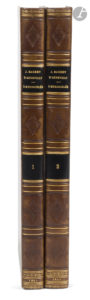 siècle). Édition originale peu courante, dédiée au marquis de Custine. Ce roman parut tout d’abord en feuilleton dans le Journal l’Assemblée nationale du 7 janvier au 11 février 1852. Il explore l’atmosphère sombre de la campagne normande après la Chouannerie. L’intrigue, peuplée de pâtres sorciers et de vieilles femmes hantées, suit Jeanne Le Hardouey, une aristocrate malheureuse, ensorcelée par l’abbé de La Croix-Jugan, un prêtre tourmenté par les souvenirs de guerre. L’œuvre révèle avec profondeur les tourments de l’âme humaine, mêlant passion et folie dans un récit poignant. L’édition se compose de 16 chapitres numérotés de I à XVII, l’imprimeur ayant omis le chapitre XI. Le roman se conclut à la page 217 du second volume. S’ensuit un texte intitulé Ricochets de conversation, qui comprend une nouvelle intitulée Le Dessous de cartes d’une partie de whist. Cette nouvelle sera intégrée au recueil Les Diaboliques, publié en 1874. Très bel exemplaire à toutes marges. Dos passés, quelques minimes frottements d’usage, une restauration sur le premier plat du second volume.