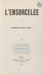 BARBEY D’AUREVILLY (Jules). L’Ensorcelée. Paris : Alexandre Cadot, 1855. — 2 volumes in-8, 223 x 139 : (2 ff.), II, 301 pp., (1 f.) ; (2 ff.), 332 pp., (1 f.). Demi-veau vert foncé, dos lisse orné, non rogné (reliure de la fin du XIXe...