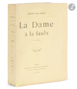 SAINT-POL-ROUX. La Dame à la faulx. Tragédie en cinq actes et dix tableaux. Paris : Société du Mercure de France, 1899. — In-18, 187 x 130 : 431 pp., couverture imprimée. Broché, non rogné. Édition originale de cette longue tragédie en...