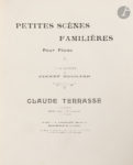TERRASSE (Claude) - BONNARD (Pierre). Petites scènes familières Pour Piano. Paris : E. Fromont, [1893]. — In-folio, 350 x 270 : (2 ff.), 36 pp., (1 f.), pp. 37-61 pp., couverture illustrée. Demi-maroquin rouge à coins, filets dorés, dos à...