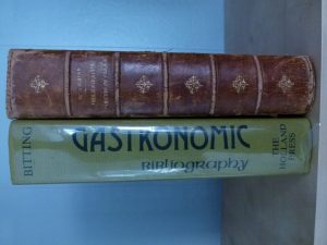 VICAIRE (Georges). Bibliographie gastronomique. Paris, P. Rouquette, 1890 ; fort vol. gr. in-8, demi-basane marron, dos à nerfs orné. L'un des 450 exemplaires "sur beau papier vélin". Reliure un peu faible, sinon bon exemplaire.— JOINT : BITTING...