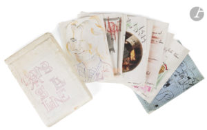 Livre unique, fruit d’une collaboration entre Jean-Loup Philippe et le peintre et illustrateur italien Gianni Bertini (1922–2010). Cet ouvrage, composé de 29 feuillets format A4, présente, sur presque chacun d’eux, des poèmes autographes de Jean-Loup Philippe accompagnés d’œuvres originales de Bertini. Le premier feuillet présente un portrait de Jean-Loup Philippe réalisé par Bertini, tandis que le dernier porte la justification signée des deux auteurs, avec cette mention : « Ingatestone, Essex-England. Ce livre ! ! ! ! de Bertini et J.L. Philippe a été conçu en 15 x 3 avant midi di 1er janvier 1976. » Première collaboration connue entre ces deux artistes pour un livre de ce type, 16 ans avant la publication de leur ouvrage O (1992), ce projet marque un moment charnière : Jean-Loup Philippe débutait alors sa carrière littéraire, tandis que Bertini était déjà au sommet de son art. Créé « pour le plaisir », sans visée éditoriale, ce livre témoigne de la liberté créative du poète et du peintre, conçue sans contrainte. Les documents de ce genre, émanant d’un artiste de l’envergure de Bertini, sont extrêmement rares. Redécouvert à l’occasion de la publication de « Jean-Loup Philippe, un artiste du livre » (Pandore, 2023), cet ouvrage illustre parfaitement l’audace et l’intimité de leur collaboration.