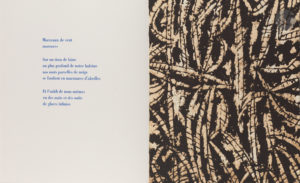 poèmes de Jean-Loup Philippe, illustrée de 10 encres du peintre abstrait Victor LAKS (1924-2011) sérigraphiées par Del Arco. Tirage limité à 75 exemplaires sur vélin d’Arches (n° 4), signés par l’auteur et l’artiste à la justification. Exemplaire très bien conservé. Joint : - LAKS (Victor). Sept sérigraphies 1994. Paris : Atelier Del Arco, 1994. — 341 x 256 : (1 f.), 6 planches (sur 7). En feuilles, couverture rempliée. Album tiré à 60 exemplaires sur papier vélin. Cet exemplaire, numéroté 23, comporte 6 des 7 lithographies requises. Toutes sont signées et datées par l’artiste, et portent le cachet à sec de l’éditeur. Une petite tache sur le haut du feuillet du titre.
