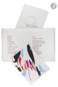 originale de ce conte de Jean-Loup Philippe, illustrée de 5 gravures originales hors texte du peintre, sculpteur et designer Bernard QUENTIN (1923-2020). Tirage limité à 25 exemplaires sur vélin d’Arches, signés par l’auteur et l’artiste à la justification. Celui-ci, portant le numéro 12, a été enrichi d’une page autographe signée de l’auteur, donnant un extrait du conte, et de deux dessins originaux signés de l’artiste, représentant le titre du livre écrit de façon stylisée. Ces dessins sont ceux qui ont servi à illustrer les jaquettes. L’un des dessins comporte la mention E.A.