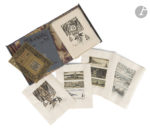 de maroquin noir ; étui. Première édition illustrée de ce roman d’aventure et policier, dont l’intrigue se déroule principalement dans les forêts silencieuses d’Amérique du Nord. L’ouvrage est l’œuvre de l’écrivain américain Stewart Edward White (1873–1946). Cette magnifique édition, publiée par Mornay, constitue le douzième titre de la collection « Les Beaux Livres ». Elle propose le texte dans sa première traduction française, réalisée par Germaine Delamain et parue initialement en 1911. L’ouvrage est orné de 113 bois gravés en deux tons par Jean Lébédeff (1884–1972), l’un des plus grands graveurs sur bois du XXe siècle. Tirage limité à 1 053 exemplaires, cet exemplaire est le plus précieux de tous : il s’agit de l’unique exemplaire sur japon impérial ancien (n° 1), accompagné des croquis préparatoires de l’artiste, de quelques tirages d’essai, ainsi que d’une triple suite des bois (dont une sur japon et une sur chine). Toutes les feuilles de croquis (à l’exception des deux destinées à la couverture) et toutes les épreuves des suites sont signées par Lébédeff. Exemplaire en excellent état de conservation. Frottements d’usage au dos de la chemise.