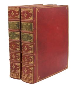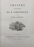 Paris, Didot l’Aîné, 1783. 2 volumes in-4, maroquin rouge, triple filet avec fleurons aux angles, dos orné, tranches dorées (Reliure de l'époque).Très belle édition des grandes pièces de Corneille, admirablement imprimée avec les nouveaux caractères de François-Ambroise Didot (1730-1804) sur papier grand raisin de France de la fabrique de Matthieu Johannot à Annonay. Les titres sont ornés du monogramme gravé de l’imprimeur.