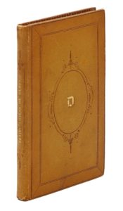 Paris, Castel, 1856. In-24, maroquin citron, double encadrement de filets et d'un médaillon ovale estampés à froid, portant au centre l'initiale D dorée, dos lisse titré en long, dentelle intérieure, doublures et gardes de soie rouge, tranches rouges (Cuyls).Édition originale de cet ouvrage peu courant sur l'épagneul nain, le carlin et autres petites races canines.