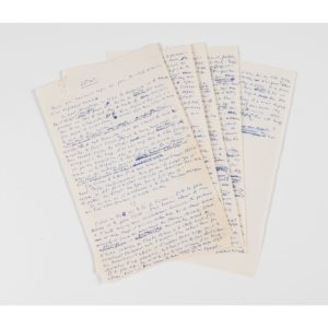 abondamment raturé avec corrections, et ajouts au verso de certains feuillets ; il sera publié - avec quelques variantes - en tant que première partie de la préface à l'édition des "Œuvres complètes" d'Istrati, en 1968 chez Gallimard (p. I à XII, sur XXIII) : "Voici que reviennent enfin au jour les chefs-d'œuvre d'un vagabond roumain." L'écrivain roumain Panaït Istrati, "Prince des vagabonds" (1884-1935), fut un grand voyageur, communiste éclairé ; il avait débarqué à Paris grâce au soutien de Romain Rolland, qui l'avait "découvert" après sa tentative de suicide en 1921 et avait encouragé la publication de "Kyra Kyralina" (1923). Kessel fut fasciné par le tempérament d'Istrati, avec ses récits flamboyants d'Orient, resta un de ses compagnons jusqu'à sa mort."Le Gorki des Balkans" "ne pouvait pas admettre que le monde fut partagé en deux peuples, le bon et le mauvais (...) Discussions, débats, affrontements… Istrati s'en alla une fois de plus." (f. 6).