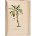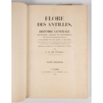 50,5 cm), demi-maroquin à long grain rouge, avec petits coins de vélin, dos à nerfs orné, pièces de titre et de tomaison vertes, plats de l'époque (Rel. moderne pastiche). Édition originale rare de la première grande flore en couleurs consacrée aux Antilles françaises. Botaniste originaire du Poitou, François Richard de Tussac (1786-1827) s'établit à la Martinique en 1786, puis prit la direction d'un jardin botanique en Haïti. Après un séjour d'étude en Jamaïque, il regagna la France où il assuma, de 1816 à 1826, la direction du Jardin des Plantes d'Angers. Il avait entrepris ce vaste projet encyclopédique à la demande du gouvernement français pour répertorier, classifier et mettre en valeur les richesses agricoles et économiques des Antilles. Chaque texte explicatif détaille l'aspect botanique, l'origine géographique, l'usage économique ou médicinal de la plante. Elle est illustrée de 140 planches gravées en couleurs et rehaussées à la main. Inspirées directement de l'herbier rassemblé par Tussac aux Antilles, ou reprenant les modèles des plus illustres artistes naturalistes de l'époque - principalement Turpin, avec des contributions de Poiteau -, elles ont été gravées par divers artistes. Chaque planche illustre avec une grande précision les principales espèces végétales des Antilles françaises : arbres fruitiers (cacaoyer, bananier, caféier, cocotier), plantes médicinales, ornementales et industrielles. Publié sur près de vingt ans, le projet fut coûteux et ambitieux ; il resta inachevé et ne couvrit qu'une partie des espèces recensées par Tussac. Luxueuse, cette édition ne fut tirée qu'à 150 exemplaires, selon Brunet. Bon exemplaire, dans une plaisante reliure pastiche. Il provient de la bibliothèque du paysagiste martiniquais Jean-Philippe Thoze (1941-2017), qui créa en 1982 sur les hauteurs de Fort de France, le fameux "Jardin de Balata", l'un des sites les plus fréquentés de la Martinique. Les exemplaires conservés dans les institutions sont souvent incomplets, avec des tomes seuls, ou des planches manquantes. Selon les exemplaires, le nombre de planches varie, 137 à 140 ; celui-ci contient bien une planche 25bis, dans le tome I, et une planche 1bis dans le tome III. On trouve des exemplaires avec les faux-titres et titres en latin (seuls ou en plus des faux-titres et titres en français) ; ces exemplaires étaient sans doute destinés aux institutions scientifiques internationales (académies, bibliothèques), tandis que les exemplaires comme le nôtre, avec les faux-titres et titres en français, étaient destinés à un public colonial, et aux administrateurs, médecins, agronomes, botanistes amateurs… Pritzel, Literaturae botanicae, n° 9586 : 138 pl. (30, 34, 37, 37) ; Nissen, n° 2017 : 140 pl. (31, 34, 38, 37) ; Sabin, Bibliotheca americana, vol. 26, n° 97508 : 138 pl. ; Brunet V 987. Collation et remarques : I : faux-titre et titre en français, [manque le feuillet de dédicace à la Reine-Impératrice], 198 pp. [dont le "Discours préliminaire", pp. 1 à 56], (1) f. (recto, table des matières ; verso, errata), 31 planches numérotées 1 à 30 (2 pl. n°25). - II : faux-titre et titre en français, 221 pp. [dont pp. (1-2) : feuillet de dédicace à Louis XVIII, et p. (222), table des matières], 34 planches (les pl. 2, 4, 10, 19 sur double page ; les pl. 25 à 34 ne sont pas numérotées). - III : faux-titre et titre en français, 121 pp., (1) f. table des matières (verso blanc), 38 planches (dont 2 pl. I, l'une d'après Poiteau, l'autre d'après Turpin), numérotées 1 à 37 (sauf les pl. 14 à 19 non numérotées) - IV : faux-titre et titre en français, 121 pp., p. (122), table des matières, 37 pl. Tome I, manque le feuillet de dédicace à la Reine-Impératrice (non chiffré, il devrait être après le titre). Exemplaire entièrement remis en état : d'habiles restaurations (déchirures, petits trous, comblements plus importants) sont visibles sur de nombreux feuillets (par ex., tome IV, pp. 73-74). Gardes neuves pliées. De rares feuillets et planches sont plus courts (par ex., tome I, pl. 6 ; tome IV, pl. 24). Quelques taches et rousseurs pâles (plus marquées sur les faux-titres et titres). Tome III, trace de pliure à l'angle inférieur des premiers feuillets. Tache pâle en pied des vol. I et II.